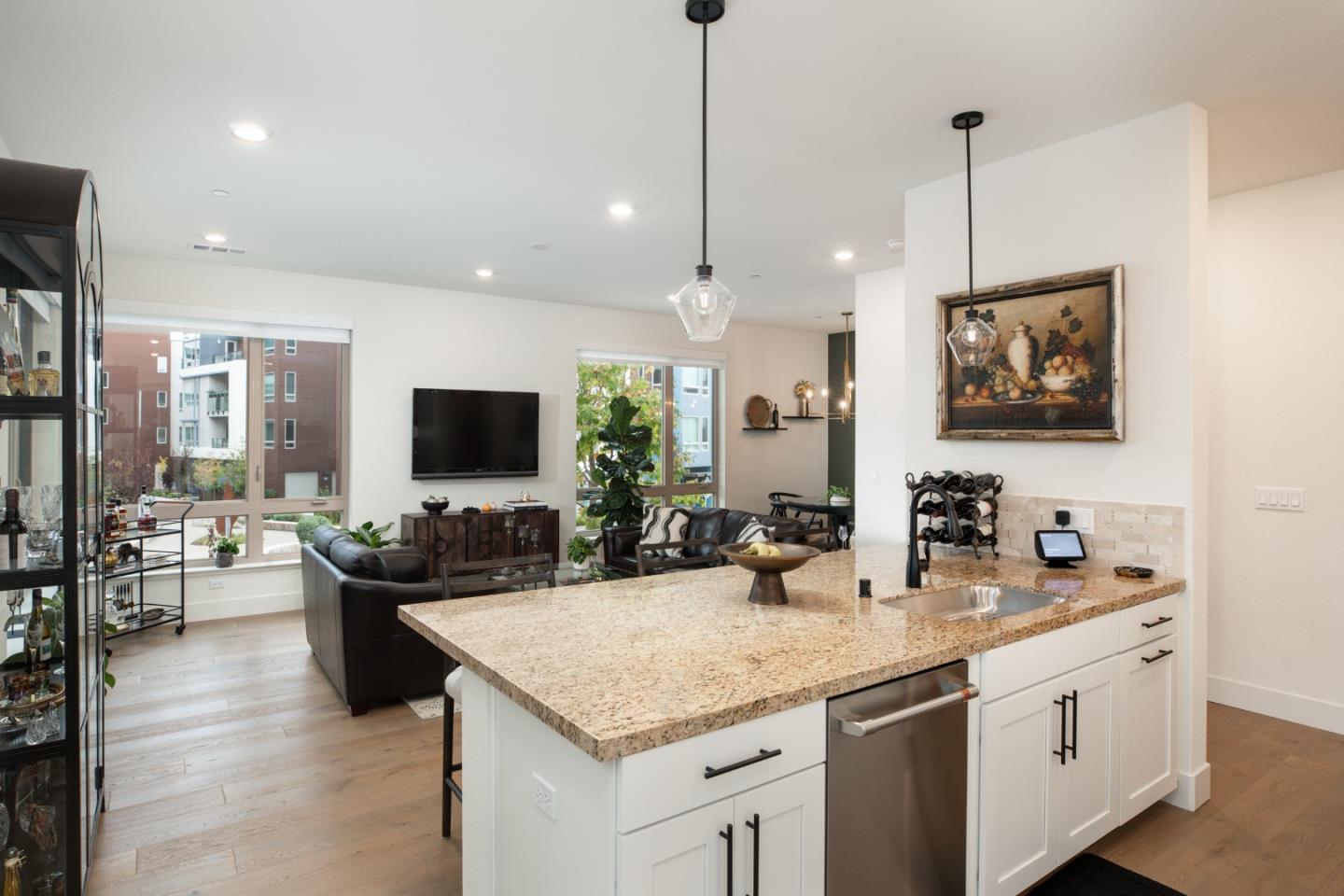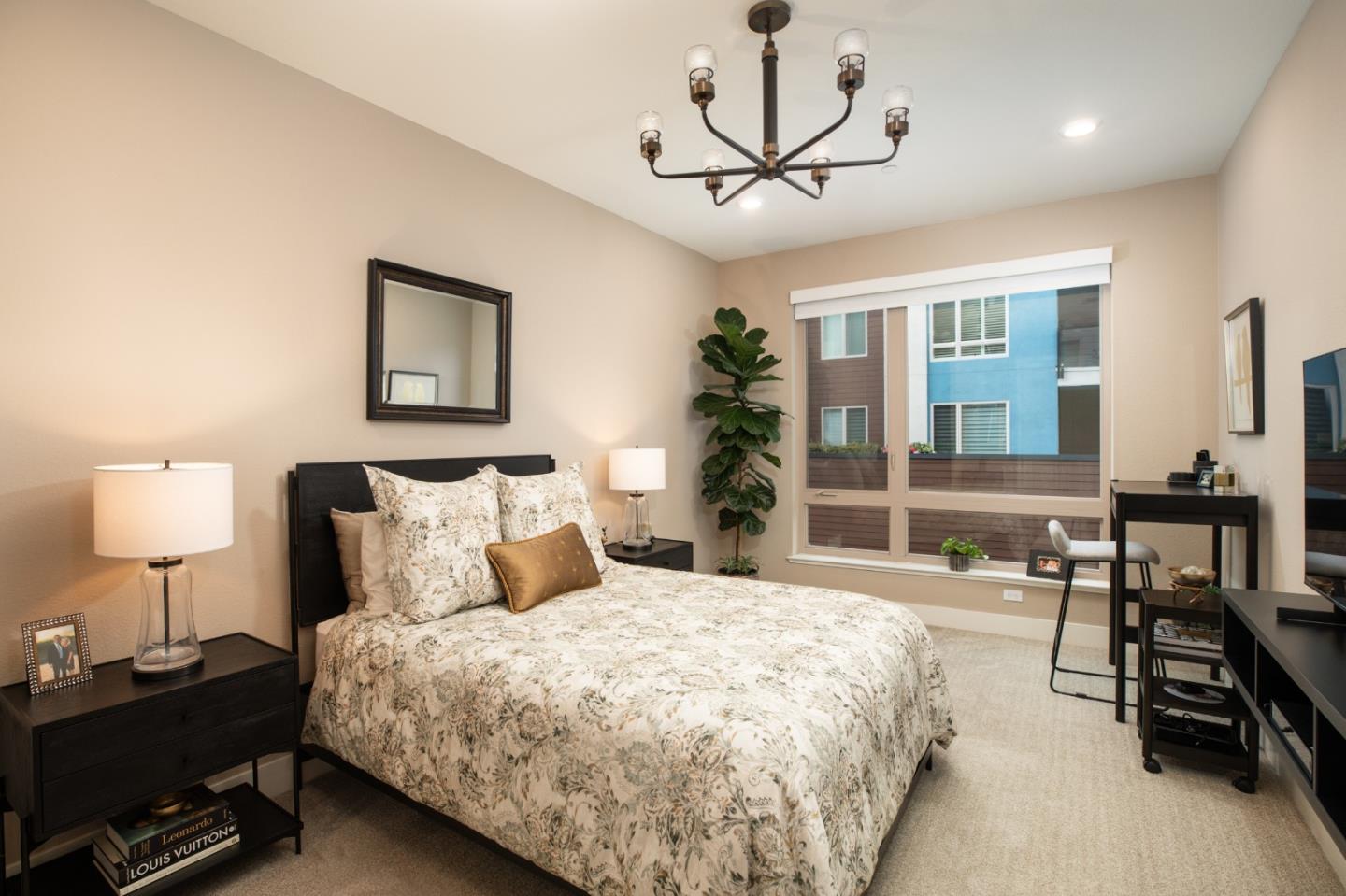 Active 55+ living at Foster Square, a condominium community in the heart of Foster City just steps to everything. This rarely available corner unit was formerly the community model home and is conveniently just off the extra-large elevator. Features include upscale finishes like high-end luxury vinyl floors, oversized windows with electronic blinds, chandelier and recessed lighting, and fine carpet in the bedroom wing. The open concept design is filled with natural light and looks out to two community Art Walks as well as wintertime views reaching out to Foster Citys iconic lagoon. A gourmet kitchen has island counter seating, granite counters, and all stainless steel appliances including a 6-burner gas range. The spacious one-level floor plan has 3 bedrooms and 2 baths with a lovely primary suite that includes a large walk-in closet and en suite bath with curbless shower. A standout feature is the exceptionally large 2-car tandem garage, complete with dual private entrances and extra space for storage, fitness equipment, or even a wine cellar. Every amenity surrounds this home, from cafes to restaurants, myriad social and fitness activities, as well as the library and boating on the lagoon.