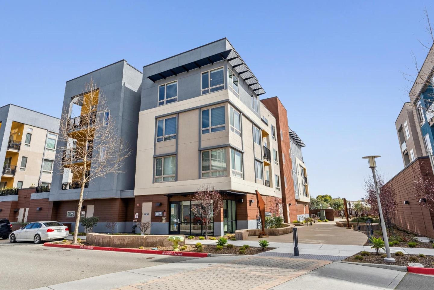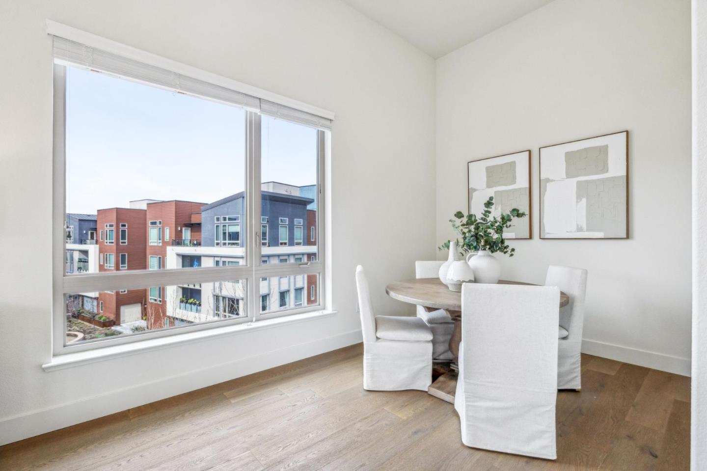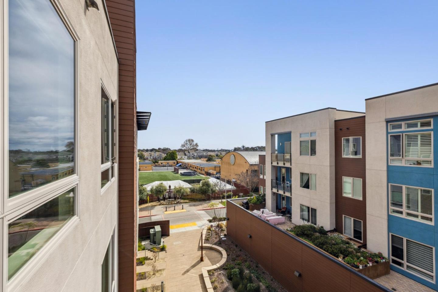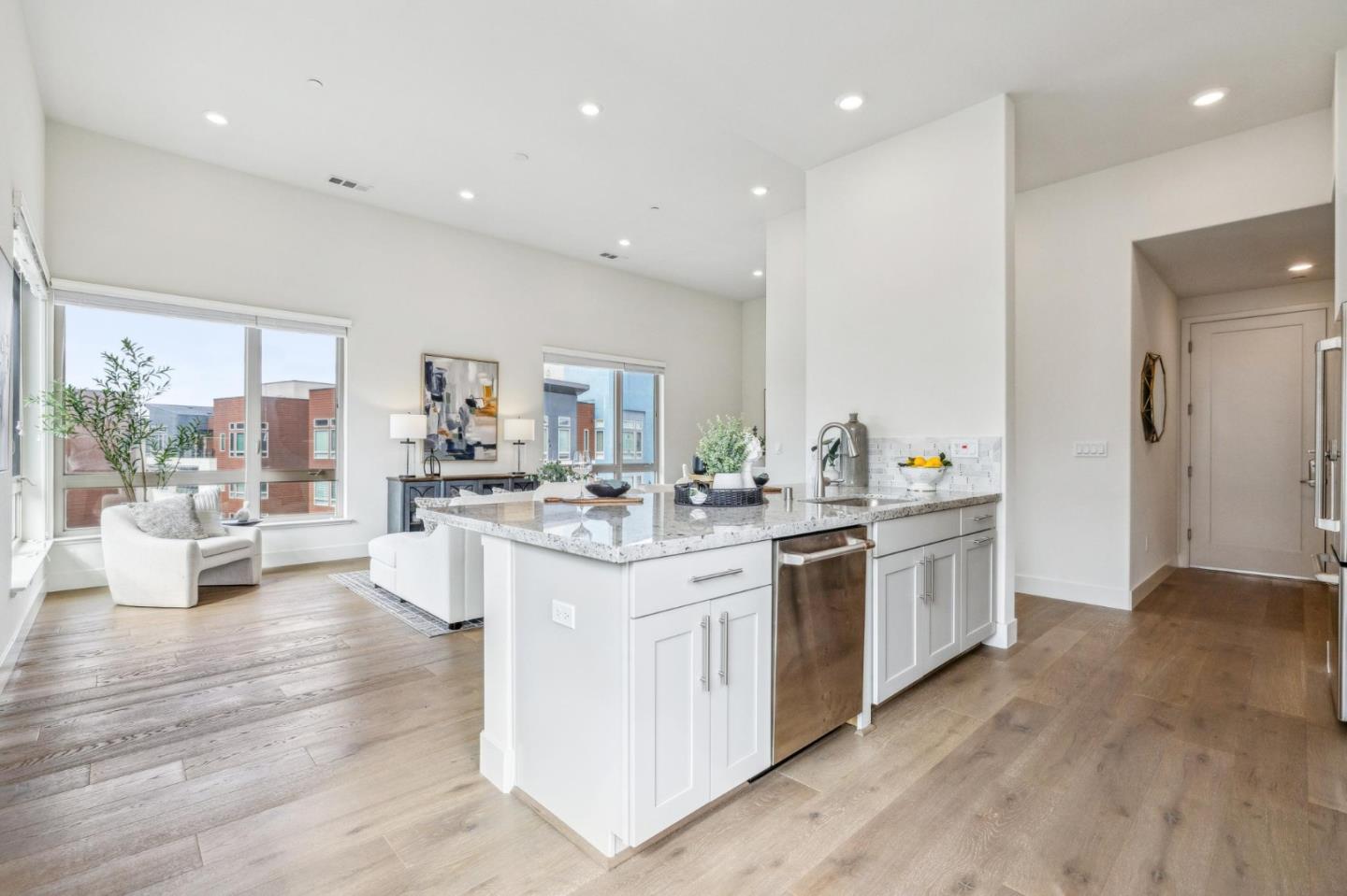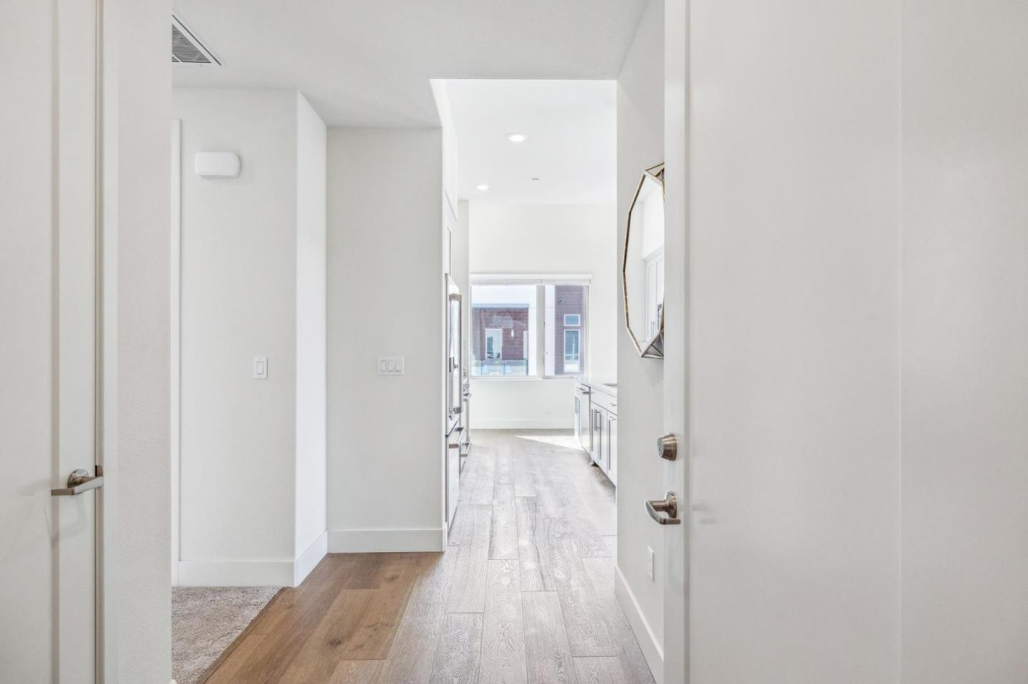 Rarely available top-floor corner unit at Foster Square, an active 55+ living community in the heart of Foster City just steps to everything. It features a lagoon water view and wonderful finishes including engineered wood floors, carpeted bedrooms, oversized windows, and recessed lighting. The high ceiling and open concept design are filled with natural light and has a wonderful private patio for fresh-air living. A gourmet kitchen has island counter seating, granite counters, and all stainless steel upscale appliances including a gas range. The spacious one-level floor plan has 3 bedrooms and 2 baths with a lovely primary suite that includes a large walk-in closet and en suite bath with curbless shower. Every amenity surrounds this home, from cafes to restaurants, grocery store to postal office, myriad social and fitness activities, as well as the library, community recreation center, and boating on the lagoon.