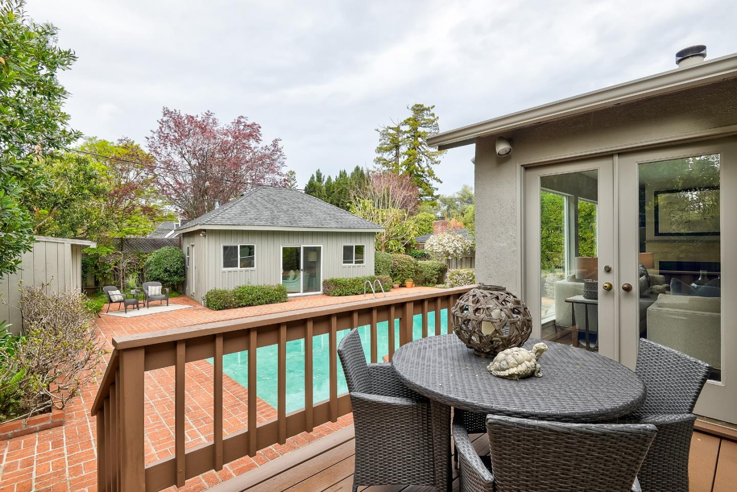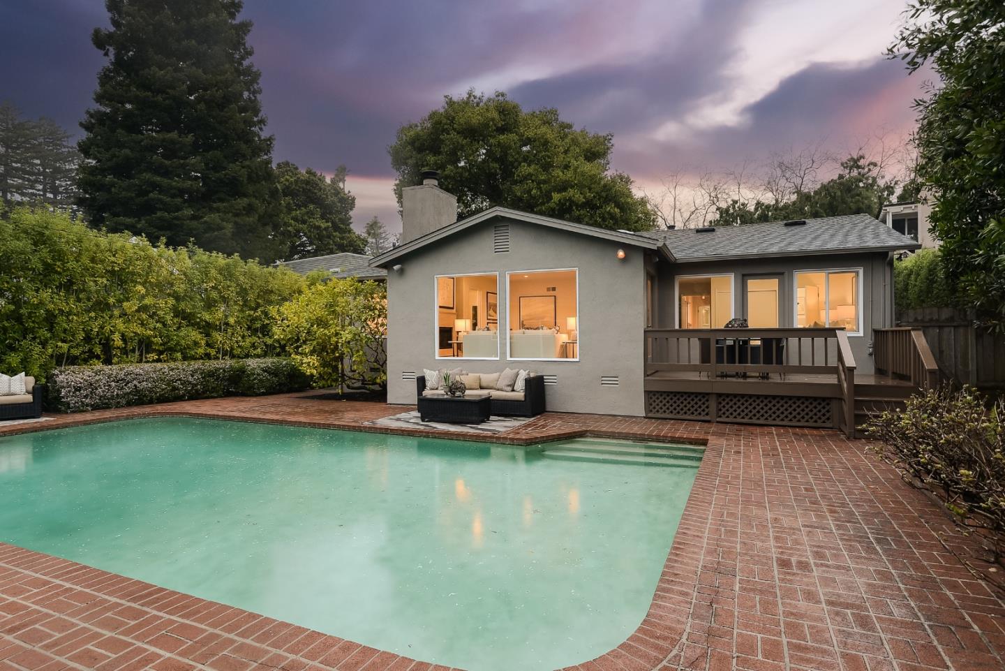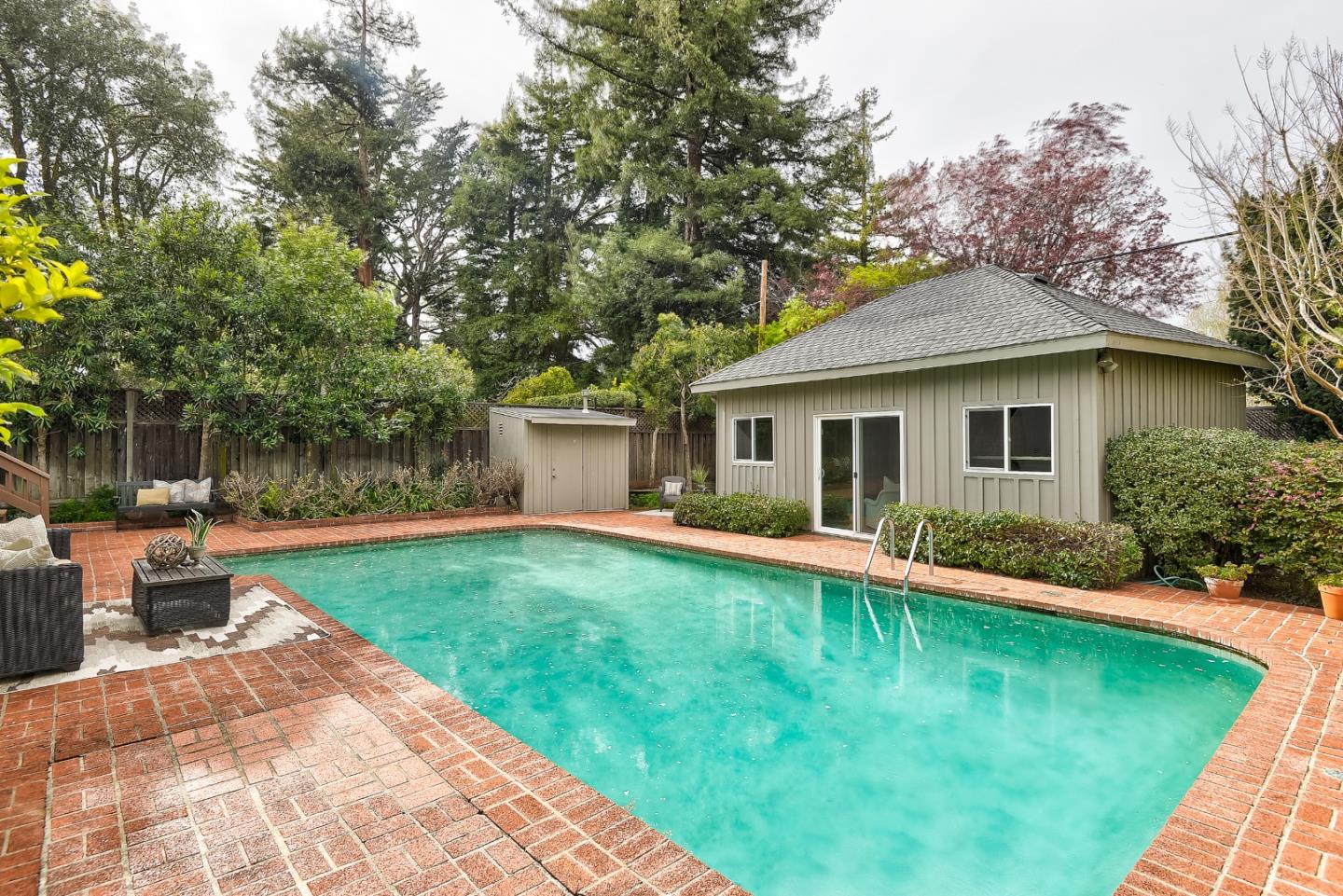 Secluded garden gem on a sought-after street in the highly coveted San Mateo Park neighborhood with outstanding opportunity to transform into your dream home. Freshly painted interiors, hardwood floors in some rooms, traditional living room and formal dining room, plus sky-lit updated kitchen and family room combination. The single-level floor plan has 3 bedrooms and 2 baths, including primary suite, plus pool house with 1 bedroom, 1 bath (buyer to verify permitting). Very private rear yard with central pool surrounded in brick plus perimeter foliage for added privacy. Close-in location an easy stroll to Burlingame Ave and also close to downtown San Mateo. This home is ready to unlock its full potential.