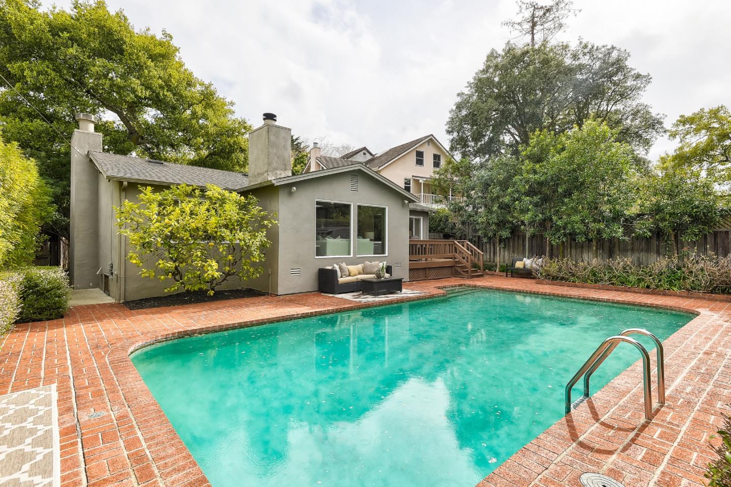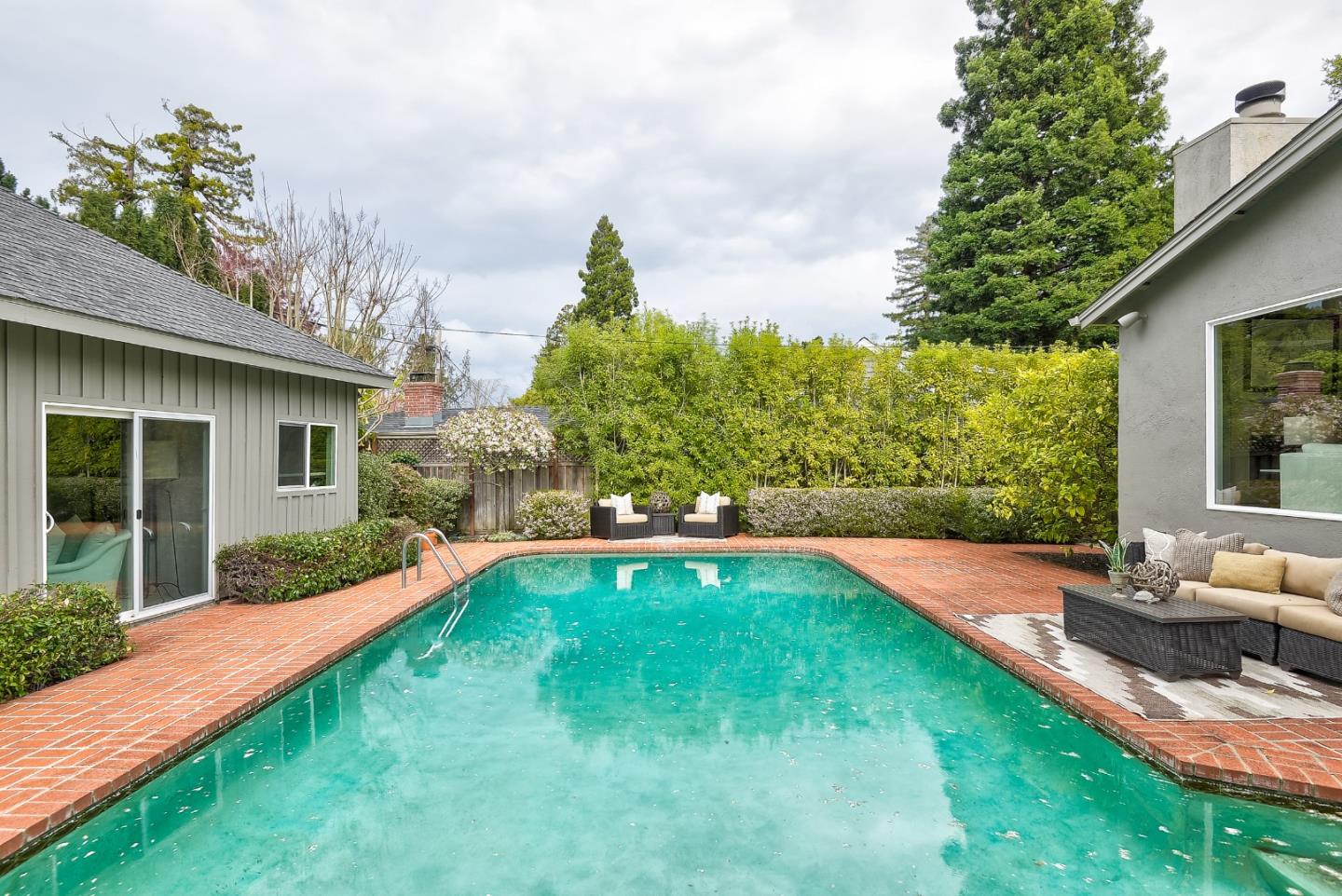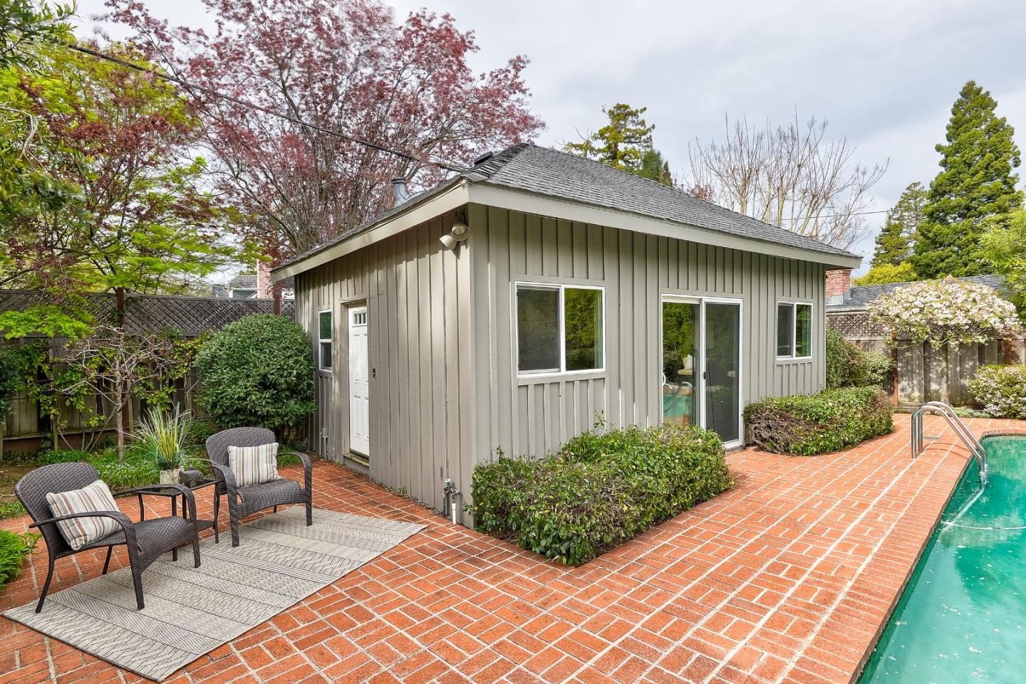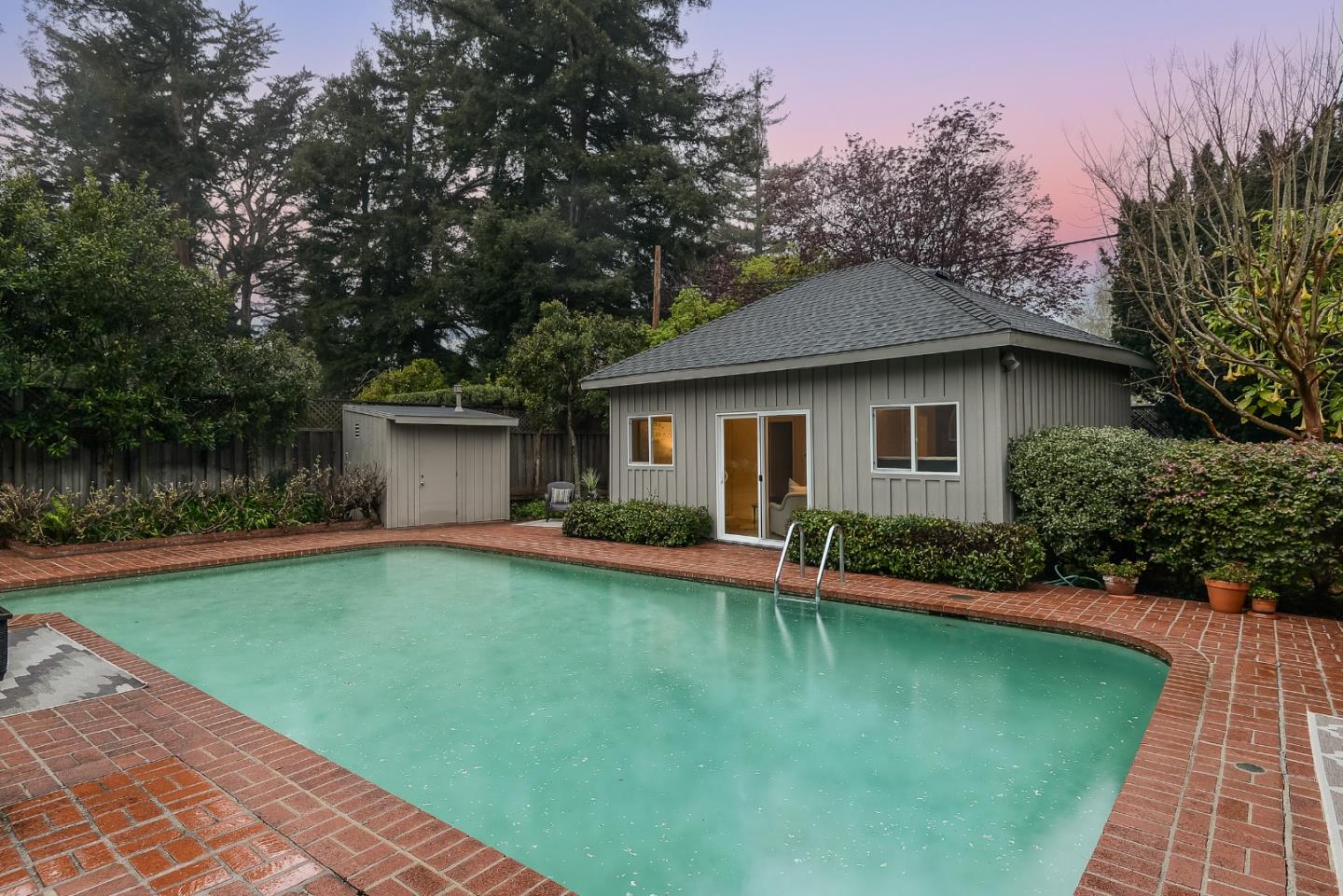 Secluded garden gem on a sought-after street in the highly coveted San Mateo Park neighborhood with outstanding opportunity to transform into your dream home. Freshly painted interiors, hardwood floors in some rooms, traditional living room and formal dining room, plus sky-lit updated kitchen and family room combination. The single-level floor plan has 3 bedrooms and 2 baths, including primary suite, plus pool house with 1 bedroom, 1 bath (buyer to verify permitting). Very private rear yard with central pool surrounded in brick plus perimeter foliage for added privacy. Close-in location an easy stroll to Burlingame Ave and also close to downtown San Mateo. This home is ready to unlock its full potential.