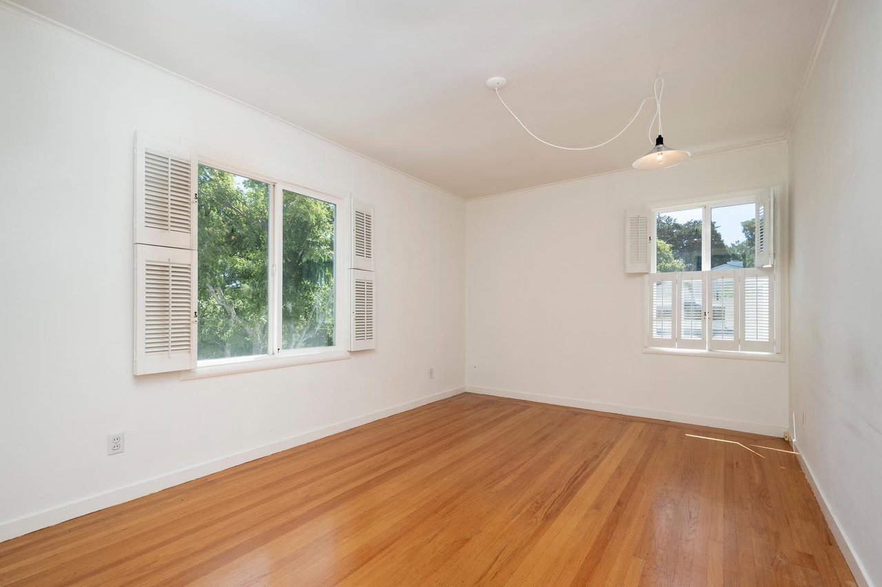 In the hills of Burlingame, with views out to the San Francisco Bay, this circa 1947 property awaits your dream vision for the future – transform or possibly build new (buyer to check with the city of Burlingame). Vintage details abound with fine hardwood floors and retro-style eat-in kitchen and baths. Elevated from the street, the living room and kitchen each have views out to the Bay from the main level. Upstairs, there are 3 bedrooms and 2 baths, including a primary suite with deck overlooking the rear yard and one bedroom with even more sweeping vistas of the Bay. Low-maintenance grounds are gently sloped with a sizeable level rear yard for outdoor enjoyment. Located on a non-through street with direct access to hiking trails at Mills Canyon Park, this home is equally convenient to San Francisco and Silicon Valley and has access to top-rated Burlingame schools.