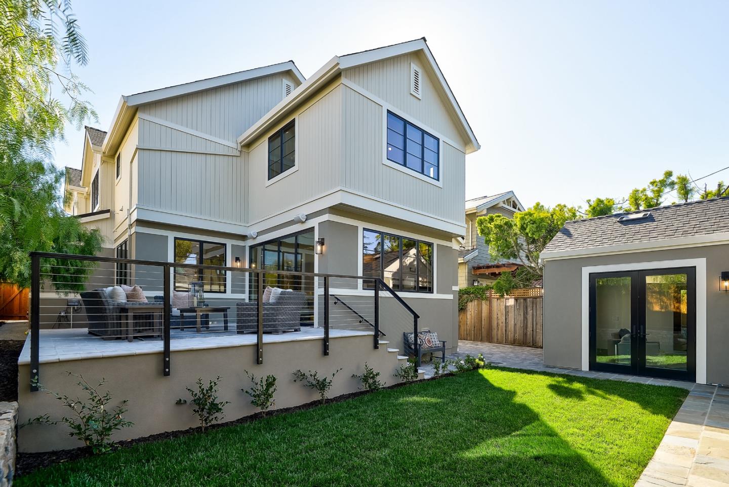 Just completed new Easton Addition home by Sargent Development with transitional modern design and Accessory Dwelling Unit. From the signature front porch, enter to interiors with wide-open spaces, abundant natural light, and clean lines of understated modern design. Professionally designed interiors integrate European oak floors and exceptional natural stone, quartz, and tile finishes. The floor plan is wonderfully flexible, easily accommodating today's remote work needs. At the heart of the home is a stunning kitchen great room with large island, Wolf and Sub-Zero appliances, and retractable Nana doors. There are 5 bedrooms, including a suite on the main level; the ADU is suitable for office, guest, or extended family needs. Beautifully landscaped grounds with covered patio connecting to the ADU and garage that could also be used as a fitness center. Excellent Burlingame schools and just minutes to Broadway shops and restaurants.