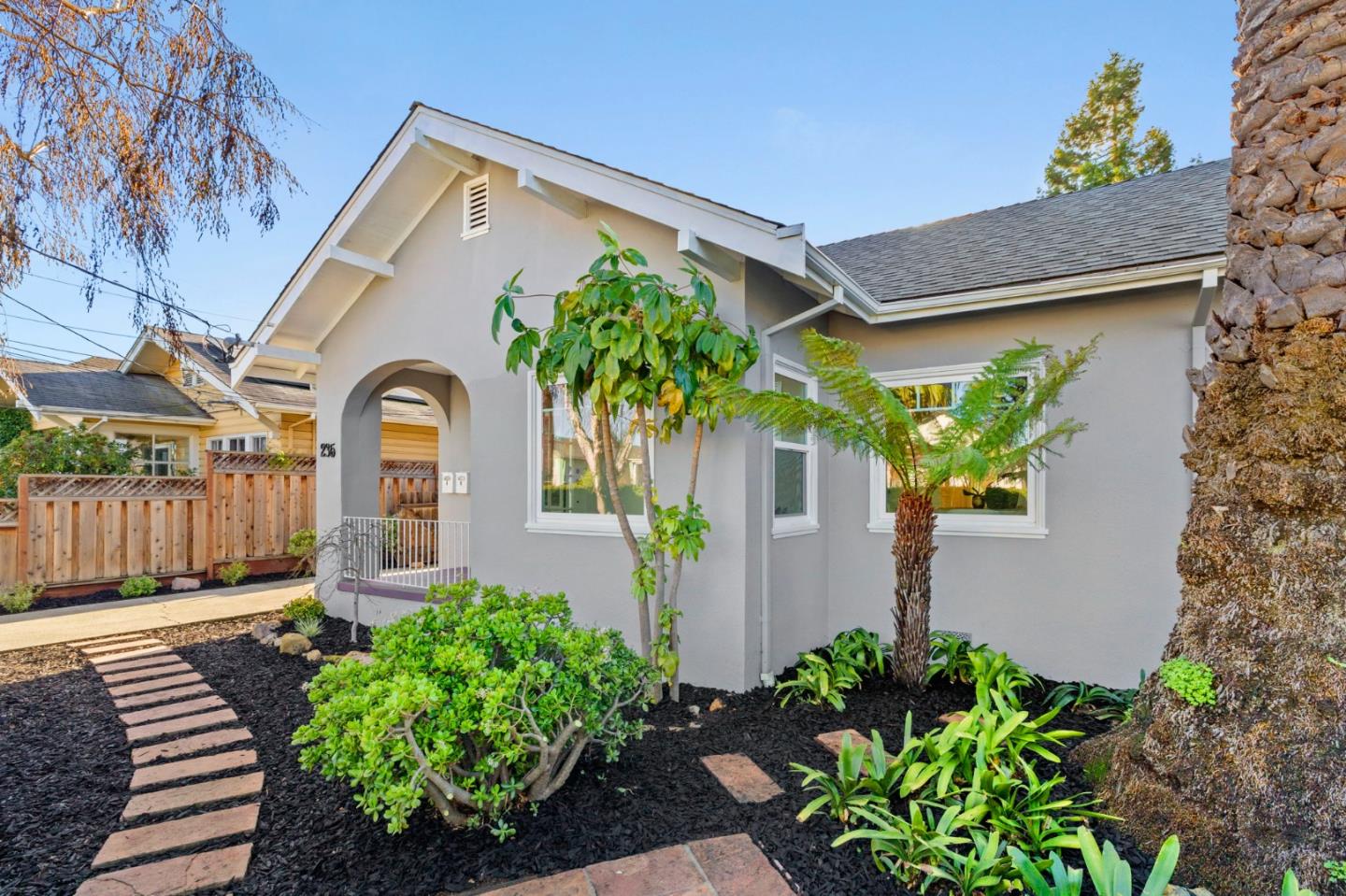 Beautifully updated bungalow and independent ADU, built in 2019, in downtown just one-half mile from shops and restaurants. The main home features 2 bedrooms and 1 bath, with newly painted interiors and refinished hardwood floors. Period details remain intact amid a gracious living room with fireplace, formal dining room, and an inviting breakfast room with built-in leaded glass china cabinet. A remodeled kitchen, separate laundry room, and central air conditioning add everyday functionality. The detached ADU has 1 bedroom, 1 bath, a full kitchen, private patio, and mini-split HVAC, creating an ideal opportunity for rental income, guest accommodations, or work-from-home use. Refreshed landscaping, a covered front porch, private rear yard with lawn and hardscape, and off-street open and gated parking complete the property. This home is also just one mile from downtown Burlingame and has access to highly ranked San Mateo High School.